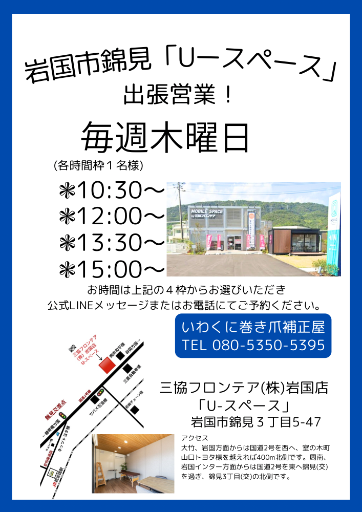 ※木曜日は錦見のレンタルスペースでの出張営業となります。(受付時間10:30〜15:00)