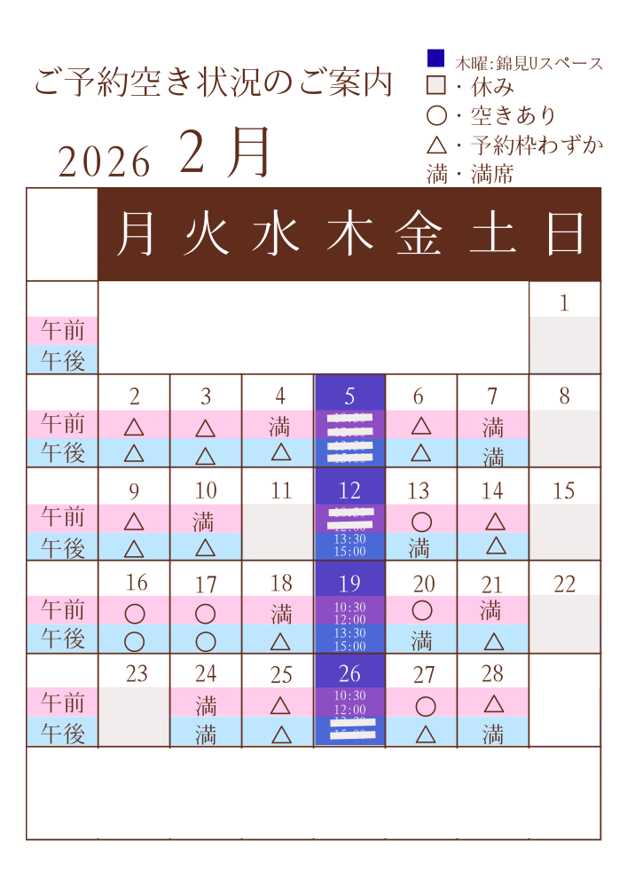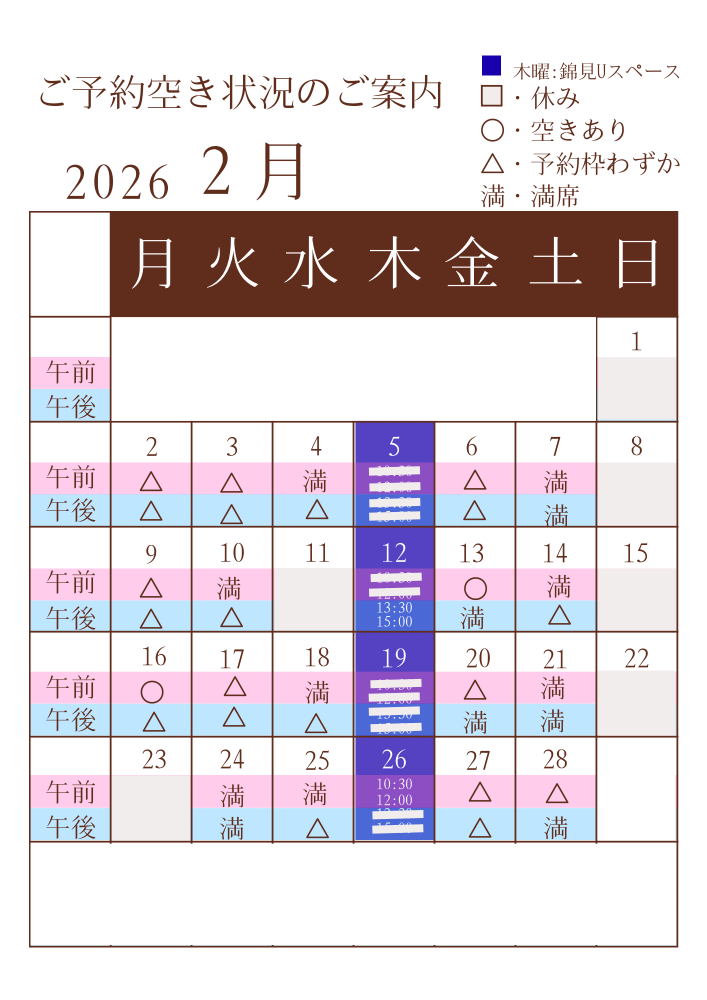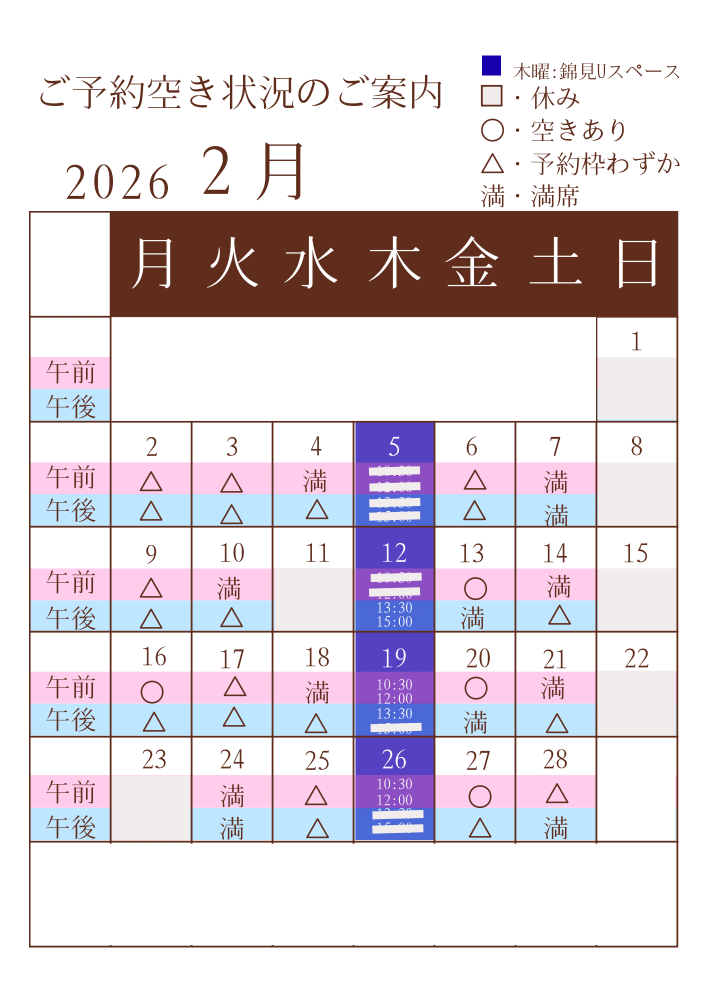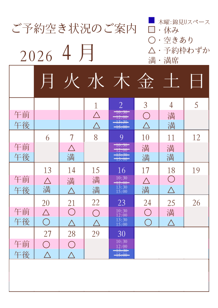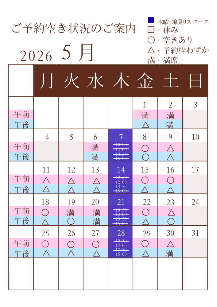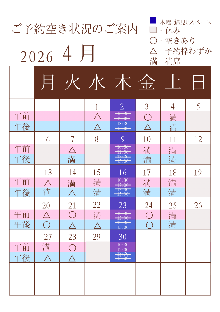 ※木曜日は錦見のレンタルスペースでの出張営業となります。(受付時間10:30〜15:00)
