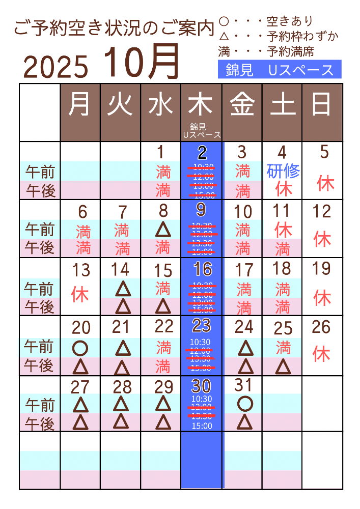 9:00~17:00 | ○ | ○ | ○ | ※ | ○ | ○ | 休 |
